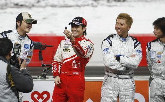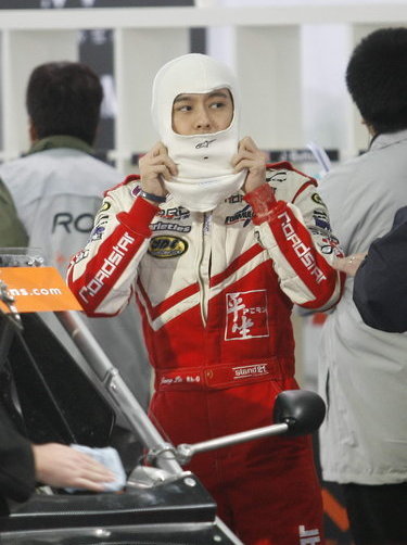 ????日前,09ROC車王爭霸賽在北京鳥巢舉行。一身賽車服的孫楠顯得格外嚴肅,而他的妻子潘蔚也同樣低調。由于天氣降溫,潘蔚身著長款羽絨服頭戴鴨舌帽,把自己裹得嚴嚴實實,生怕被別人認出來。而林志穎在當爹之后依然像個長不大的孩子,他拿著微型攝像頭場內自拍,十分興奮。