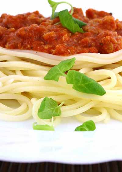 ????材料:絞肉100克、大蒜末2顆、蘑菇切片5顆、蕃茄蔬菜面醬2杯、蔥花少許、水1/4杯、意大利面200克