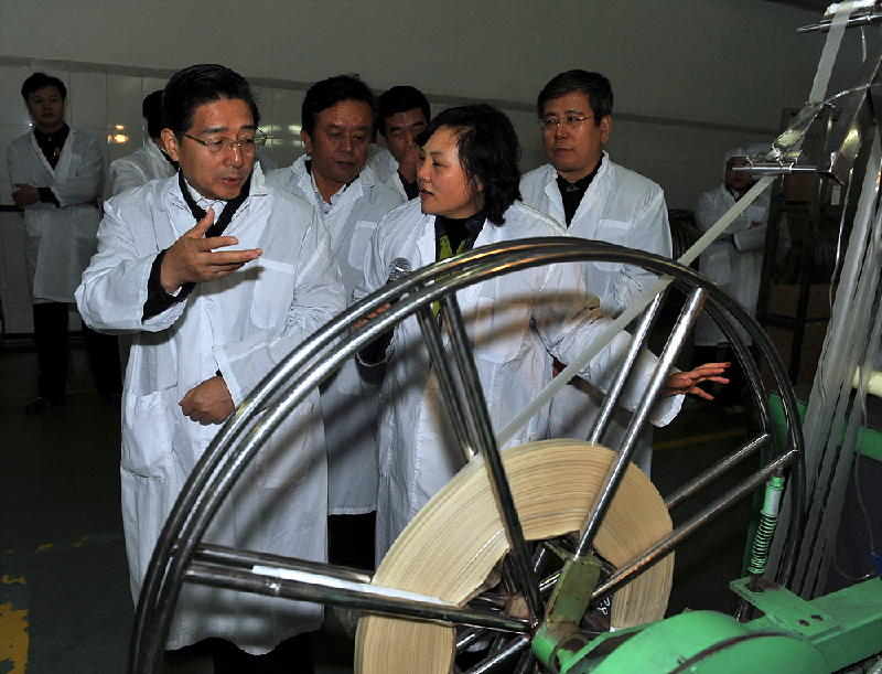 郭聲琨到神冠蛋白腸衣有限公司生產車間考察調研。 孟亞西攝
