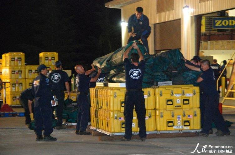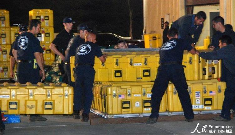 ????2010年1月12日,美國,洛杉磯洛杉磯縣消防搜救小組成員在加州洛杉磯縣消防倉庫內(nèi)準備器材,等待隨時前往海地實施地震救援。