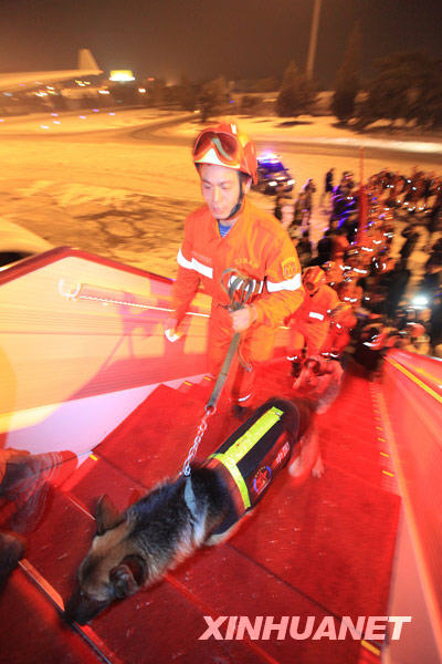 ?? 1月13日,中國國際救援隊隊員在首都機場登機,前往發(fā)生強烈地震的海地執(zhí)行救援任務。新華社記者邢廣利 攝