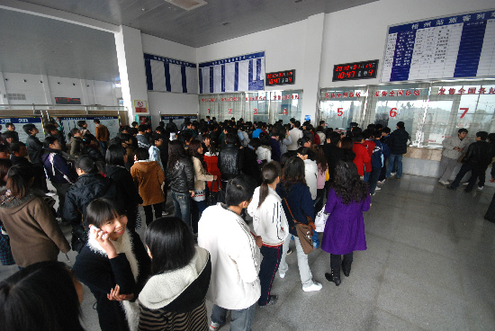 ????記者隨后來到火車站發現,四個售票窗口前同樣排起二十多米的隊伍。