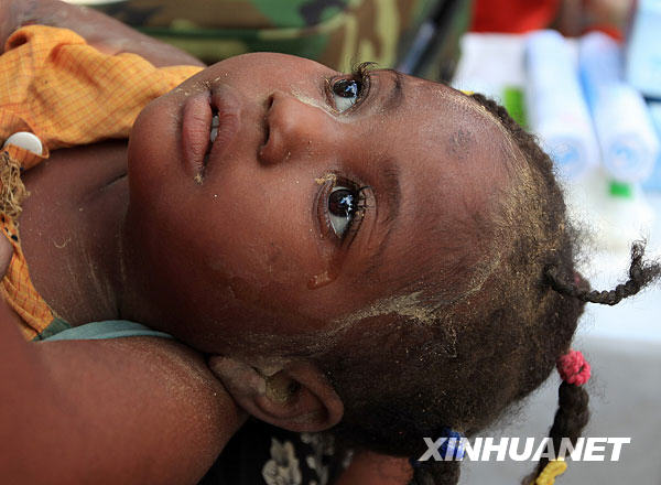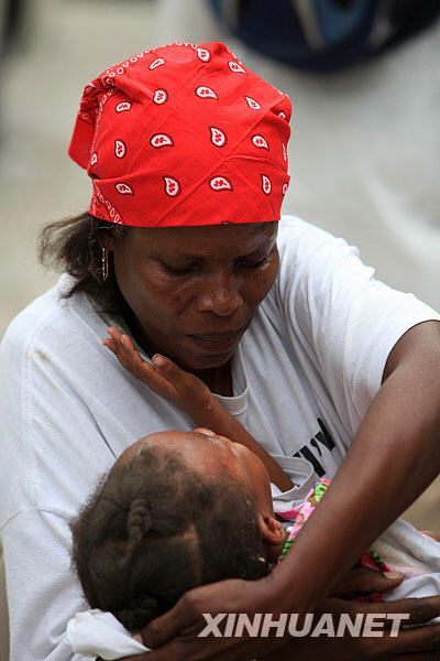 ????1月14日,在海地首都太子港,一位母親抱著自己的孩子等候治療。當日,中國國際救援隊的醫(yī)護人員來到海地總理府前的廣場,為在這里避難的群眾進行診療,開展醫(yī)療救助。加勒比島國海地當?shù)貢r間12日下午發(fā)生里氏7.3級強烈地震,首都太子港大量房屋倒塌,交通通訊中斷,人員傷亡情況至今難以統(tǒng)計,海地領(lǐng)導(dǎo)人估計死亡人數(shù)可能超過數(shù)萬人。新華社記者邢廣利攝