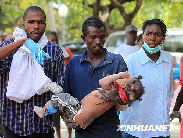 ????1月14日,在海地首都太子港,一位父親抱著孩子前來接受治療。當日,中國國際救援隊的醫(yī)護人員來到海地總理府前的廣場,為在這里避難的群眾進行診療,開展醫(yī)療救助。加勒比島國海地當?shù)貢r間12日下午發(fā)生里氏7.3級強烈地震,首都太子港大量房屋倒塌,交通通訊中斷,人員傷亡情況至今難以統(tǒng)計,海地領(lǐng)導(dǎo)人估計死亡人數(shù)可能超過數(shù)萬人。新華社記者邢廣利攝