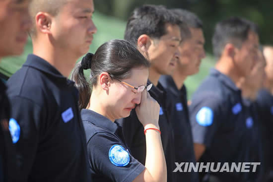 當運送遺體的靈車緩緩進入中國駐海地維和警察防暴隊營地時,所有防暴隊員在馬路兩邊列隊。當時營地十分安靜,只聽見隊員整齊劃一的敬禮聲。記者看到,許多防暴隊員的臉上掛滿淚水。