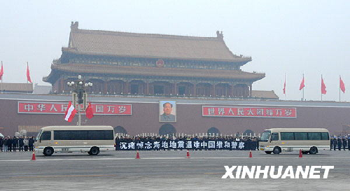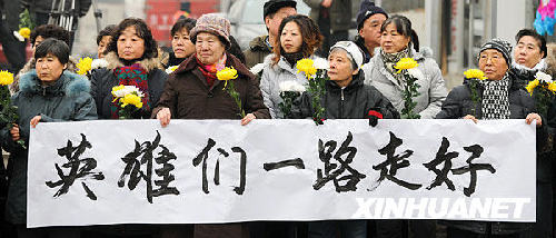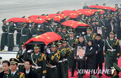 8位英雄回來了。他們是中國200萬公安警察的杰出代表,中華民族的優秀兒女,他們為了人道主義與世界的和平,獻出了寶貴的生命,祖國不會忘記他們,人民不會忘記他們!