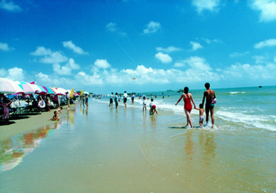 ????東海島是中國第五大島,位于東海島東面的"龍海天"是省級國際旅游度假區,瀕臨南海,碧波萬頓,56里銀沙,56里綠樹,景象萬千,氣勢磅礴旅游區內,熱帶綠蔭掩飾著數十幢異國情調的別墅賓館,游人如潮,觀海聽濤,沖浪玩沙,療養度假,商務會議,實為中國一流海濱娛樂勝地。 世界旅游權威部門評比認定,龍海天沙灘長28公里,寬150-300米,僅次了澳大利亞的黃金海岸,是中國第一長灘,世界第二長灘。