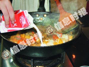 6、咖喱汁收汁時,加入適量的椰奶,蓋上鍋蓋燜煮一會。