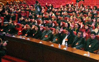 參加會議的市政協(xié)委員以舉手表決的方式,通過了大會有關(guān)決議? 何鎏攝