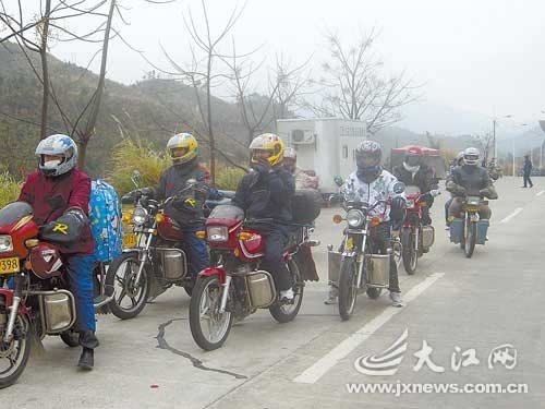 資料圖:農(nóng)民工集體騎摩托車返鄉(xiāng)