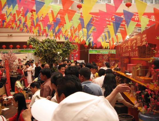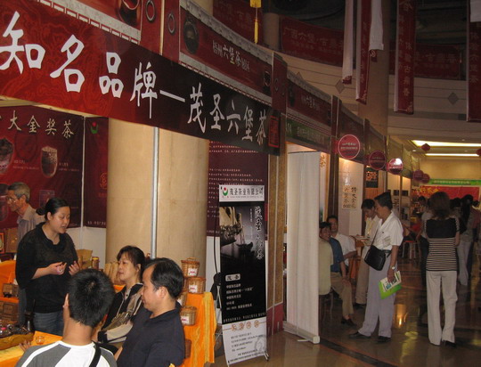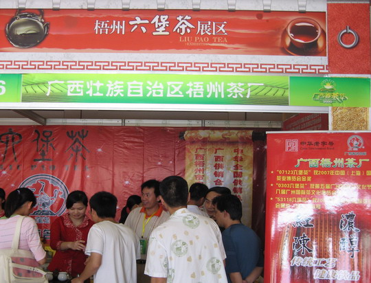 ?梧州市六堡茶協會組織了十三家六堡茶生產企業在春茶節期間集體亮相。走進春茶節展覽大廳時,我市整齊劃一的展位格局分外引人注目,參展的許多制茶企業或商家精心推出各種“六堡茶”大幅宣傳圖片,不約而同地以醒目的“中華老字號”旗幟,重點推介原產于梧州市的六堡茶,“六堡茶”一詞占據了A座展廳的半壁江山。