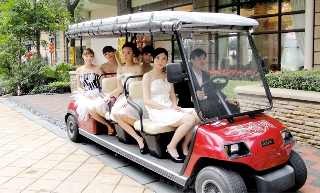 ?美女們在游園車上