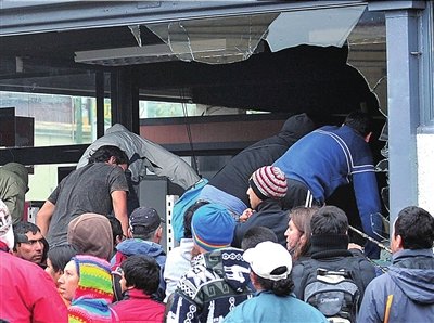 ????27日凌晨智利發生里氏8.8級地震后,28日距離震中最近的智利南部城市康塞普西翁市民開始聚集至商場等地,哄搶其中的基本生活用品、電器等。