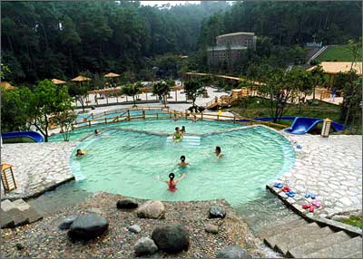????4)南美風情區:其建筑特色為南美風格,屬于中溫泉區,溫泉池有:辣姜池、玫瑰泉、酸醋池、茉莉池、許愿池、音波噴射泉、薄荷泉、流水池、菊花泉。