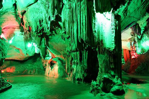 ??? 勾漏洞風景名勝區位于北流市城區東面3公里處,占地面積204公頃,是全國道教“三十六洞天”的“二十二洞天”。巖洞全長1500米,勾、曲、穿、漏、奇景天成,洞內石柱、石筍以及各類天然奇特的鐘乳石縱橫交錯,千姿百態。洞前亭臺樓閣,雕梁畫棟,綠樹婆娑,曲徑通幽,石壁上歷代石刻琳瑯滿目,倍添藝術魅力。