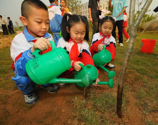 在梧州職業學院的植樹林里,不少職業學院的學生以班級小組為單位,手持鐵鍬等工具在埋頭挖坑種樹。樹苗栽好后,掛上了“××班‘紀念樹’”的牌子。當記者詢問其中緣由時,梧州職業學院09數控1班的學生告訴記者,作為剛進大學的學生,他們種下班級樹,是希望這些樹能作為自己大學生活的見證和留給學校最好的紀念品。