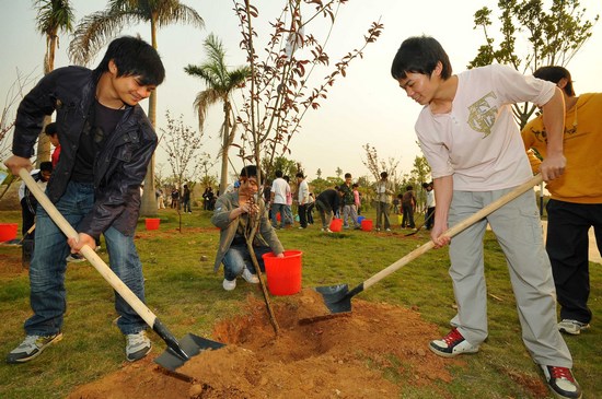 在這次活動中,少先隊員也不甘落后。“今天種樹很開心,因為樹木長大了就能吸收很多的二氧化碳,全球暖化的速度就能大大減緩了。”工廠路小學(xué)一年級3班的黃國龍告訴記者。“我從來沒有種過樹,現(xiàn)在能參與這樣的活動,我很開心。”工廠路小學(xué)一年級的吳航表示。