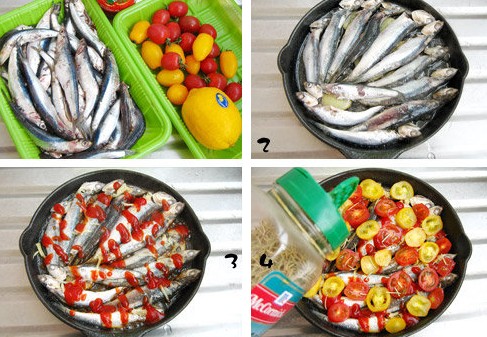 ??? 1、材料:丁香魚500克、小番茄200克、迷迭香草干5克、檸檬半個、番茄沙司40克、油15克、鹽3克、姜片5片、羅勒葉幾片;