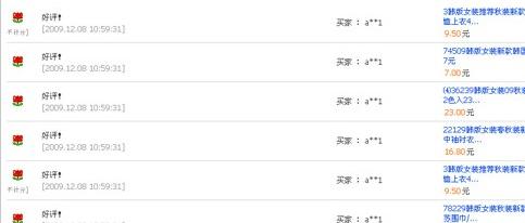 3、商品質(zhì)量是否像賣家描述的那樣好,其實(shí)這點(diǎn)上是我們最容易觀察的,不論是中評(píng)還是差評(píng),不滿意的買家總會(huì)或多或少的說(shuō)一些有關(guān)產(chǎn)品的問題,所以請(qǐng)大家在評(píng)語(yǔ)中分析一下買家的報(bào)怨是不是針對(duì)產(chǎn)品質(zhì)量的,然后在網(wǎng)上再搜索一下有關(guān)這種產(chǎn)品的評(píng)論性文章,從這幾點(diǎn)中至少可以判斷出賣家是不是稱職的、誠(chéng)信的、優(yōu)秀的賣家!優(yōu)秀的賣家他的寶貝當(dāng)然就值得信賴了! |