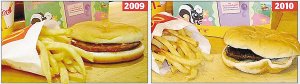 一年前,她決定做個試驗,把從麥當勞餐廳買回來的兒童餐打開,然后放在家里的架子上,一年之后拍攝的照片顯示,從外形上看薯條和漢堡竟然沒有明顯的變化。