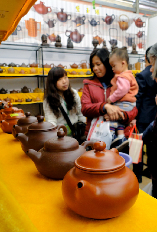 現(xiàn)場(chǎng)展示的紫砂茶壺。記者 陳疌/攝