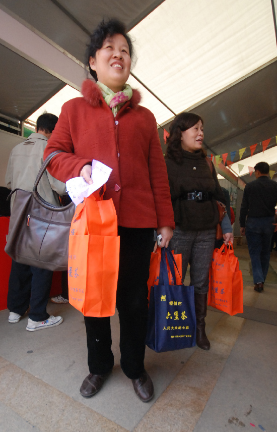 ? 泡一壺好茶,不僅需要好茶、好水,還需要好茶具,紫砂壺的熱賣就很能說明茶友對茶具的重視。300多元的一個茶壺,幾十元一個小茶杯,只要是為了一壺好茶,茶友們都愿意花上這筆錢。在宜興紫砂壺的展區上,一個個做工精美的紫砂壺猶如一件件藝術品,吸引著茶友的目光。在外觀的設計上,無論是優美的詩詞、意境深遠的山水畫、婀娜多姿的仕女圖,都在壺身上栩栩如生地展示著其神韻;在形狀上,有的像籃球,有的如木塊、有的酷似寶塔……紛繁的品種讓茶友在選購的過程中品味著中國的文化。