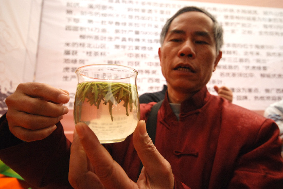 對制茶頗有研究的許崇榮老師在展會上的展出的茶產品逐一品茗、研究。