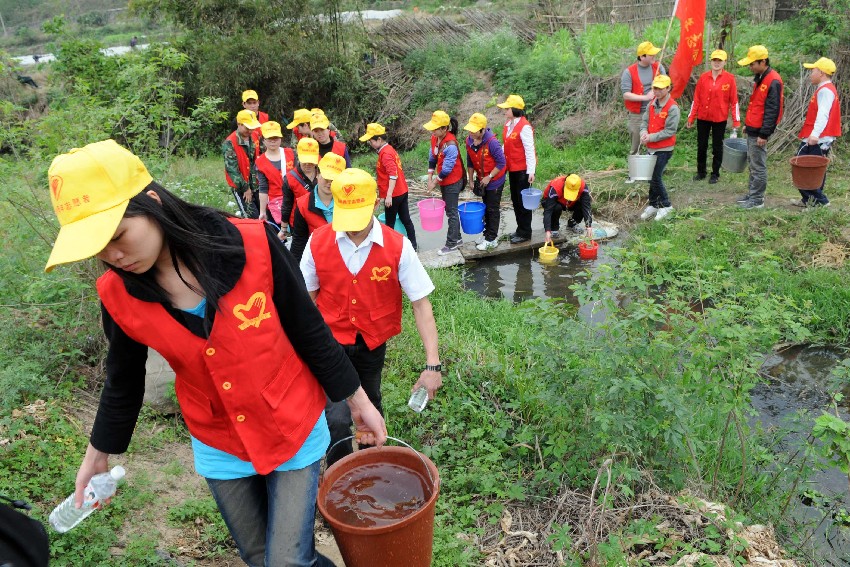 3月29日,廣西柳州市鹿寨縣的青年志愿者運水準(zhǔn)備灌溉土地。新華社發(fā)(賴柳生 攝)