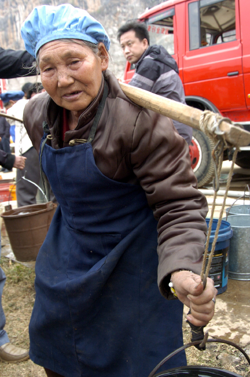 3月28日,貴州盤(pán)縣板橋鎮(zhèn)銀貢山村74歲的老人王雪美在往家中挑水。新華社記者 婁辰 攝