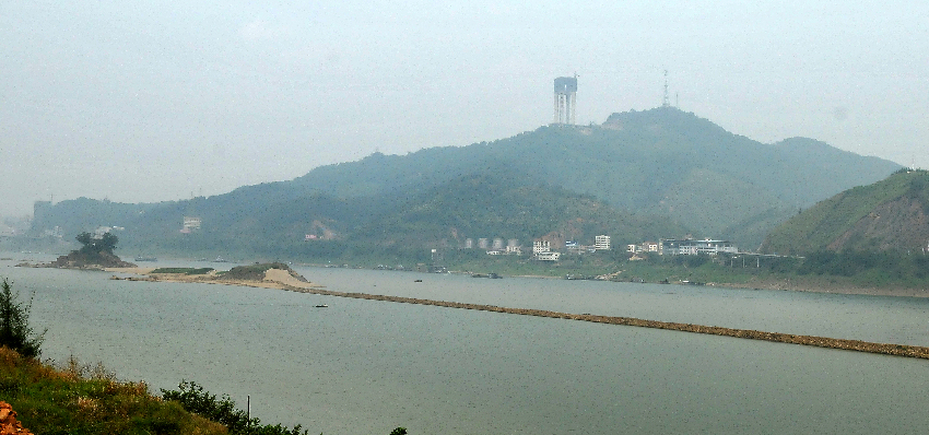 3月22日,從西江南岸遠眺系龍洲,系龍洲露出長“尾巴”。記者 何鎏/攝