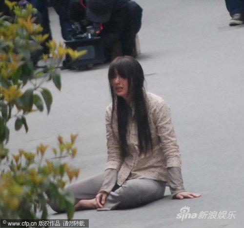 ????新浪娛樂訊 由林志玲和木村拓哉主演的《上海的月光》(《月之戀人》)日前來到上海取景,在拍攝現場,林志玲一身村姑裝扮,披頭散發坐在地上,模樣猶如街邊潑婦。而木村拓哉則表現得彬彬有禮,笑對工作人員。