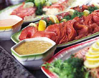 ????北歐的特色美食大部分是海洋之味,這里各國魚的種類大致相同,在細微之處,各有其妙。像在芬蘭,在赫爾辛基要品嘗波羅的海青魚;西岸的城市有秋季時燒烤的鰻魚;中部薩沃地區的魚餡面包也是最有名的獨特食品,里面夾著鱸魚或紅鱒魚和肉,汁多味美。而挪威的三文魚或是鱈魚湯也鮮美無比。新鮮的鯡魚加香料稍稍腌制便可佐以洋蔥入口,它還是荷蘭人喜愛的特色美食呢。尊貴的皇帝蟹更是蟹中之君。還有冰島的白酒腌鮑魚、美味鯡魚和各種貝類,直鮮到讓人頭暈。同時三文魚、白魚和青魚等的魚子也是美食家的佳肴。魚子有紅、白、黑三色,色彩鮮明,各自彰顯個性。適季的龍蝦聚會更是美宴之時,龍蝦加鹽和香料煮熟,是很多食客的最愛。