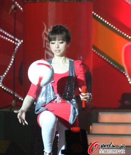 ????騰訊體育訊 2010年4月13日,有海豚音小天后之稱的張靚穎一身喜慶紅裝現(xiàn)身深圳,出席由某著名飲料品牌舉辦的“暢爽開懷,狂歡2010FIFA世界杯”活動。活動上張靚穎與主辦方首次發(fā)布了與歌神張學(xué)友聯(lián)合演繹的國語版2010南非世界杯主題曲《旗開得勝》。