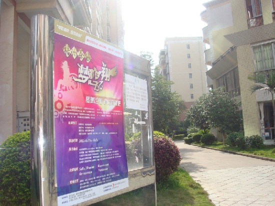 主辦方在多個(gè)小區(qū)內(nèi)都張貼大賽海報(bào)。韋世寧/攝