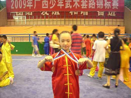 年僅11歲的梁贊戈就已經(jīng)獲得了河北邯鄲第11屆國(guó)際太極拳運(yùn)動(dòng)大會(huì)楊氏太極拳、楊氏太極刀傳統(tǒng)套路兩個(gè)項(xiàng)目的第三名、廣西壯族自治區(qū)少年武術(shù)套路錦標(biāo)賽女子少年組規(guī)定拳、長(zhǎng)兵器、短兵器三個(gè)項(xiàng)目的第三名、2009年梧州市星朗明都杯武術(shù)套路比賽獲得女子七至十七歲組長(zhǎng)拳、長(zhǎng)兵器兩個(gè)項(xiàng)目的冠軍的好成績(jī)。