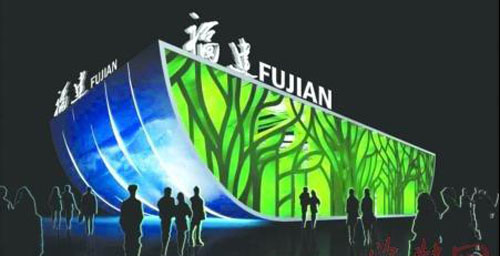 ????福建館的展示內(nèi)容將以“綠色宜居城市”為主要內(nèi)容,向人們表達海峽西岸的發(fā)展方向。展館分為實體區(qū)、互動區(qū)、展演區(qū)以及精品區(qū)。 在實體區(qū)中,高科技LED顯示屏模擬出九曲溪,還有武夷山、鼓浪嶼、媽祖像等實景模型。 互動展區(qū)中設有三個直徑兩米的大圓球,分別用福建特色的脫胎漆器、德化白瓷和漆線雕工藝制作。每個球上面都有一組經(jīng)藝術家創(chuàng)作的精巧圖案,分別展現(xiàn)“開放前沿”、“緣通兩岸”與“和諧家園”的相關內(nèi)容。 福建土樓和閩南古厝造型的建筑成為館內(nèi)的展演區(qū),將分時段通過茶葉、瓷器、漆器、海上絲綢之路等元素,以講故事的形式展現(xiàn)福建城市、文化以及生活的歷史變遷。 精品區(qū)位于土樓造型的二樓,采用典雅的紅木仿古裝飾,將展出各種珍貴藏品、文物。