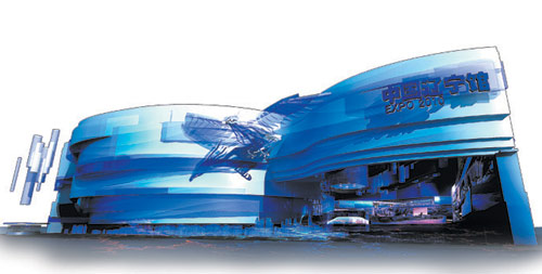????遠觀遼寧館,觀眾會看到一朵巨大的藍色浪花,它是全部采用金屬板材做成的,體現(xiàn)了鋼的堅韌與海的韻律,將遼寧這個老工業(yè)基地與沿海省份的雙重身份完美結(jié)合在一起。