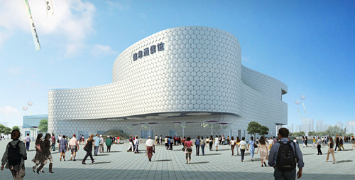 ????“信息通信館”展館建筑表現為流暢動感的形體,借助豐富多彩的圖像,形似披上了一層幻彩的絲綢外衣,也傳達出對信息時代的美好愿景與想象。展館建筑設計聚焦“流動的信息”,建筑取消了所有的建筑轉角,形成流暢的建筑體形,表達了信息時代“無限溝通”的特征。輕盈而不著痕跡的形體線條,變幻閃爍、晶瑩內斂的色彩設計,高科技材料和未來的元素,信息通信館整體從造型到色彩,從整體到細節著力捕捉信息的流動。就象生物體的所有活動都是基于神經系統傳遞的生物電信號,信息流也依托信息通信技術成為未來城市“生命活動”體系的神經,在人、物、自然之間,隨時、隨地、隨愿、流暢輕盈的涌動。