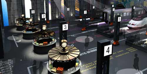 ????“活力車站”有五個“售貨亭”,分別代表人口之城、物流之城、能源之城、金融之城以及信息之城。液晶顯示器組成的車站信息牌實時顯示世界重要城市的火車、航班、船期和股票、外匯行情,讓人體驗城市的非凡活力。“循環管道”帶領參觀者在巨大的地下管道中穿越,伴隨著周期性的聲、光、風效,模擬地鐵掠過的感覺。管道區的不少裝置可與參觀者互動,體現城市脆弱的一面,引發人們對“呵護”城市的思考?!俺鞘袕V場”氣勢恢弘,通過五個世界著名的城市廣場的影片,探尋不同的城市文化意蘊,領略世界城市的精華。“生活街市”中的“靈魂圖書館”用十本圖書反映十個城市生命的興衰與人們生活的關系。