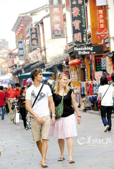 ????游畢古樸的大圩古鎮,可順便到著名的洋人街———西街一游。500余米長的西街全部大理石路面,房屋建筑古色古香,讓人感覺置身歐洲小鎮。眾多工藝品店售賣著懷舊的玩意兒,書畫店向人們展示著兒時的記憶,還有展示中國文化的功夫館。