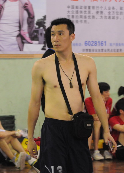 球館內太熱了,給“脫掉”找到一個充分的理由,借機展示健美的肌肉。 韋世寧 攝