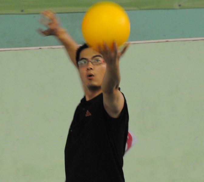 剛——冰凍三尺非一日之寒,這名隊員“鐵砂掌"發猛球欲給對手狠狠一擊。 韋世寧 攝