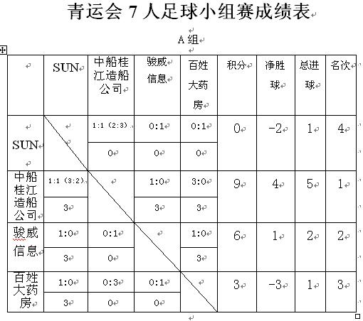 青運會7人足球小組賽成績表
