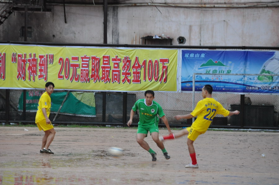 雨中作戰是梧州足球愛好者的強項? 黃能 攝