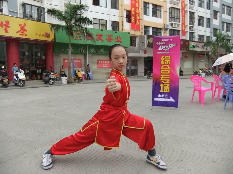 共有近二十組選手參加了昨天綜合專場的第一場海選比賽,其中八組成功晉級。綜觀昨日的綜合專場,以武術表演居多,功夫小子甘澤民身穿一身紅衣,格外醒目,靈動的身手,有力的拳法使他成為第一個晉級的參賽選手。武術小妹梁贊戈也不甘示弱,先現場書法“低碳環保”,后上臺表演拳法,被評委廖宇輝稱為文武雙全,也順利晉級。現場最受歡迎、粉絲最多的還數太極師傅蘇愛平,她表演的太極穩中有力、有如行云流水,連評委都齊齊鼓掌,稱贊比專業還專業。據悉,蘇師傅曾獲2009全國老年人太極拳比賽的金牌。