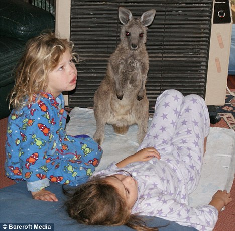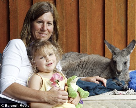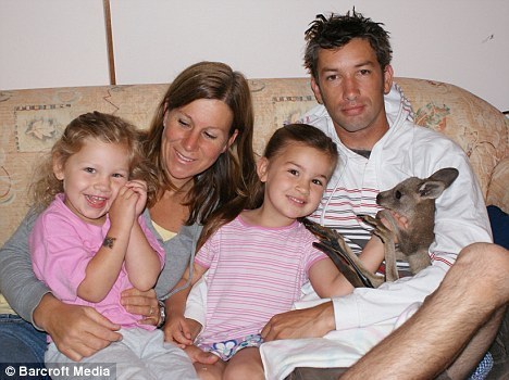 這是這對夫婦的全家福照。小袋鼠成為了這對夫婦的第三個“女兒”,一家人其樂融融。