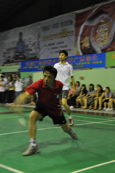 綽號“抓雞”的霍志堅(紅)連續多年參加青運會,是梧州羽壇一流高手