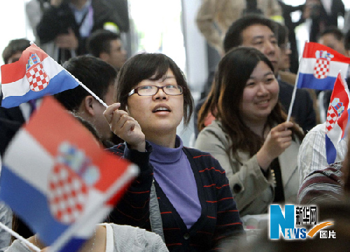 ????5月15日,在世博中心,游客在觀看克羅地亞國家館日的歌舞表演。當(dāng)日,上海世博會(huì)克羅地亞館舉行國家館日活動(dòng)。 新華社記者劉穎攝