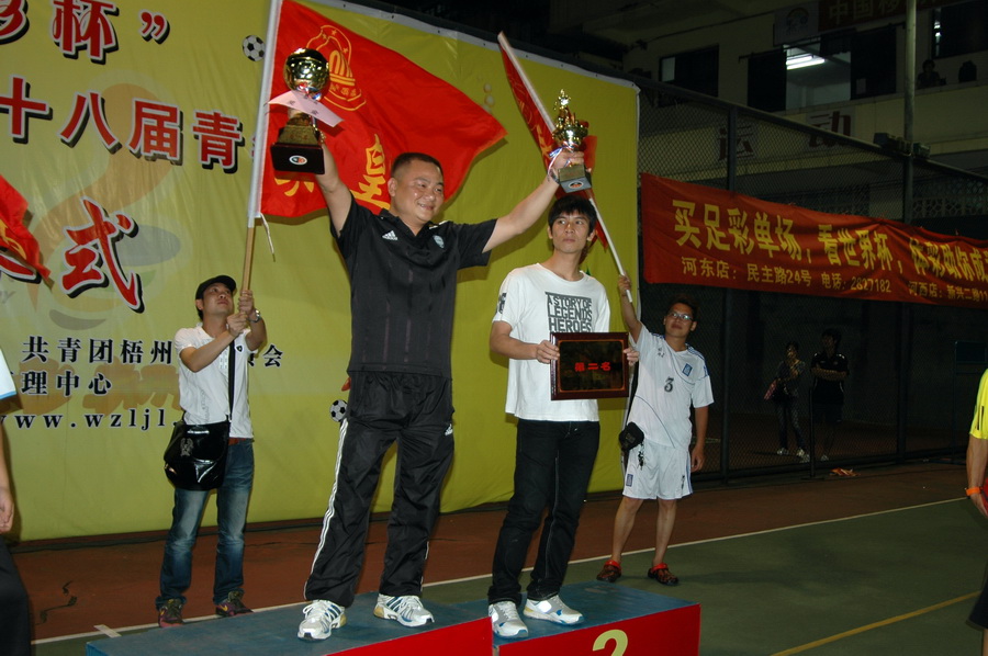 短程鐵人三項冠軍市游泳場隊員李永手捧金杯