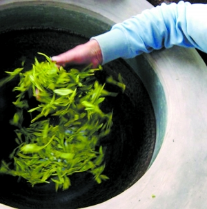 傳統的用鐵鍋殺青的工藝。
